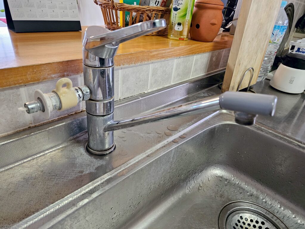 長年使用されていたキッチン水栓の老朽化により、水漏れや操作不良が見られる状態でした。