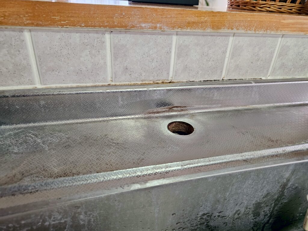 既存の水栓を撤去し、シンクまわりの清掃・取付部の確認を行ったうえで、新しいシングルレバー水栓へ交換しました。