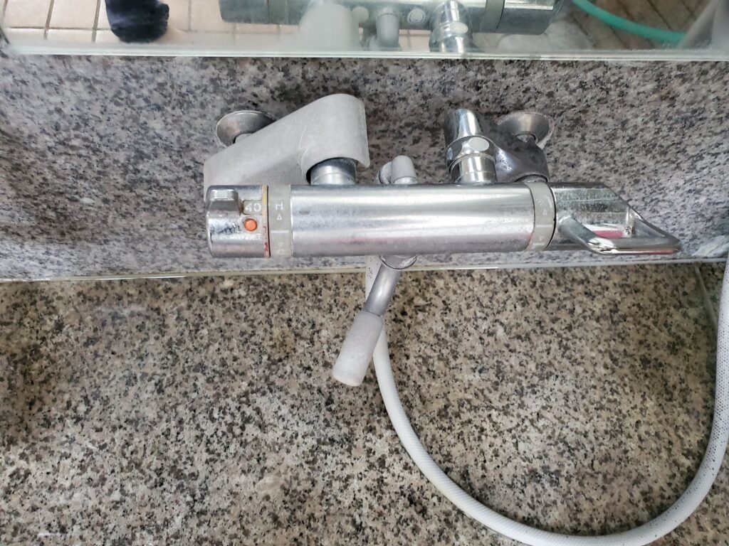 長年使用していた浴室の水栓を新しいサーモスタット式水栓へ交換しました。
